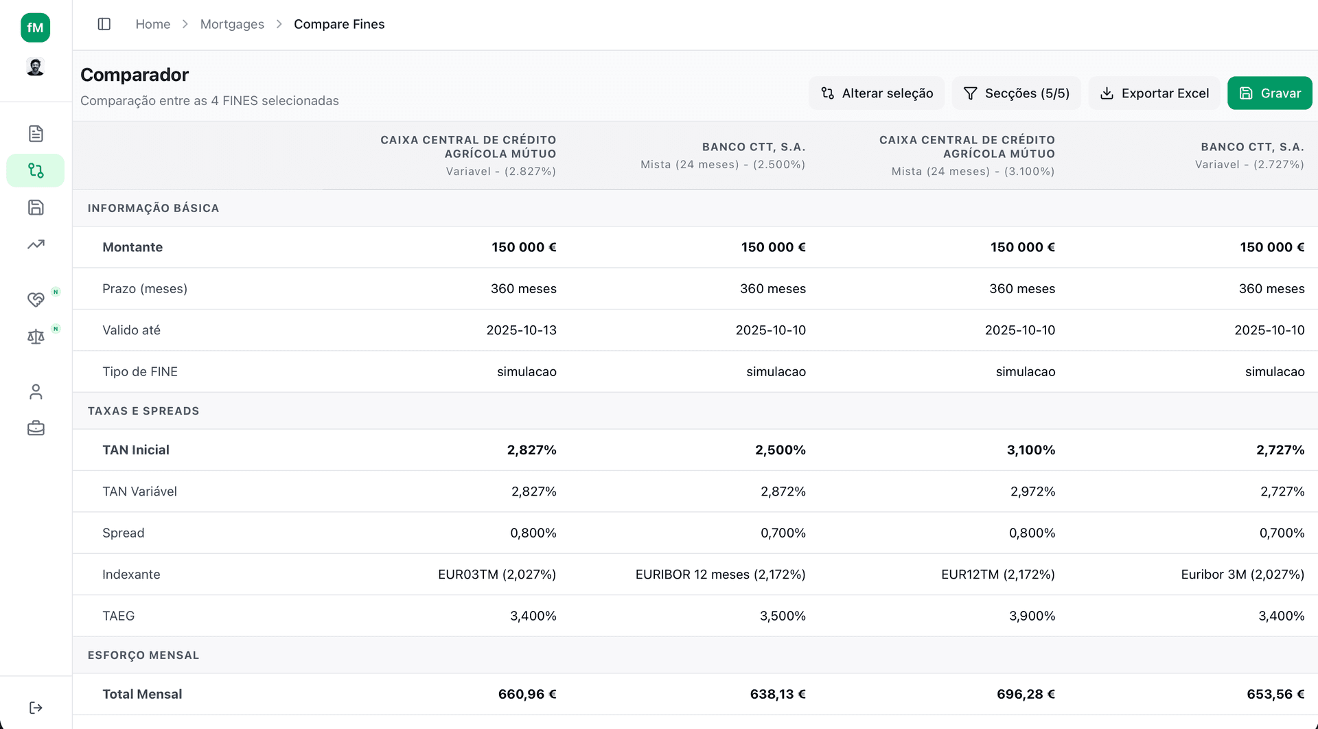 Aqui consegues perceber se uma proposta é mais barata em termos de taxa, mas sem ainda considerar todos os custos paralelos.