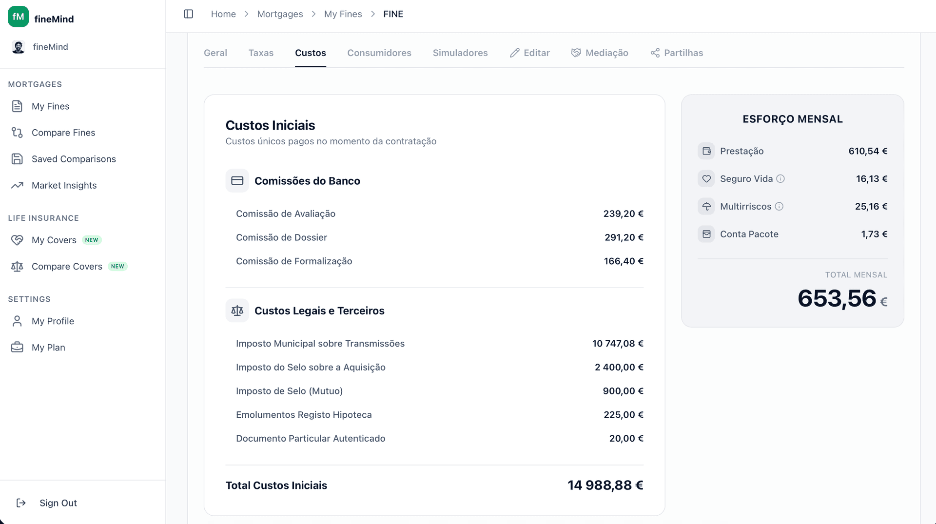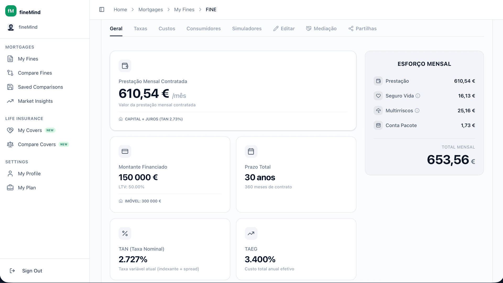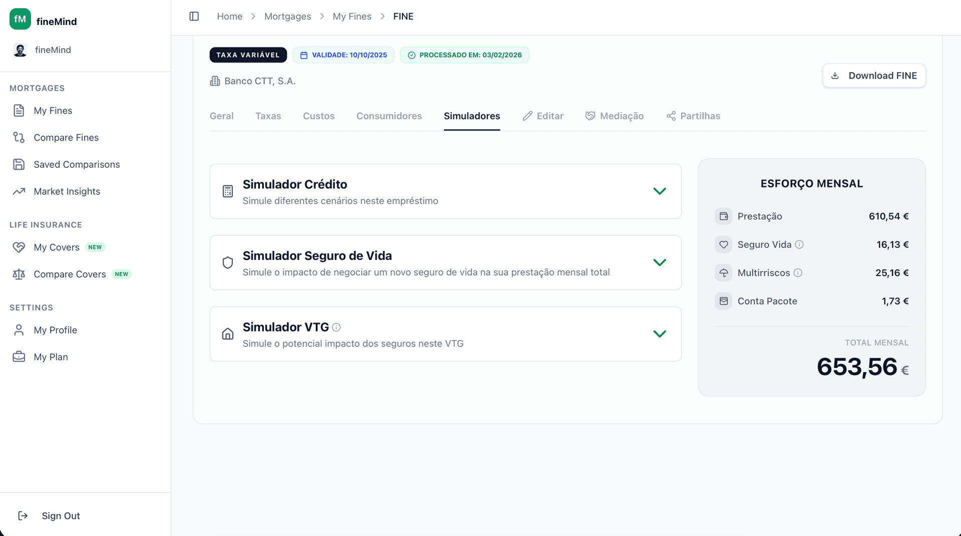 Todos estes simuladores são acessíveis na fineMind e são atualizados automaticamente com os dados da tua FINE.